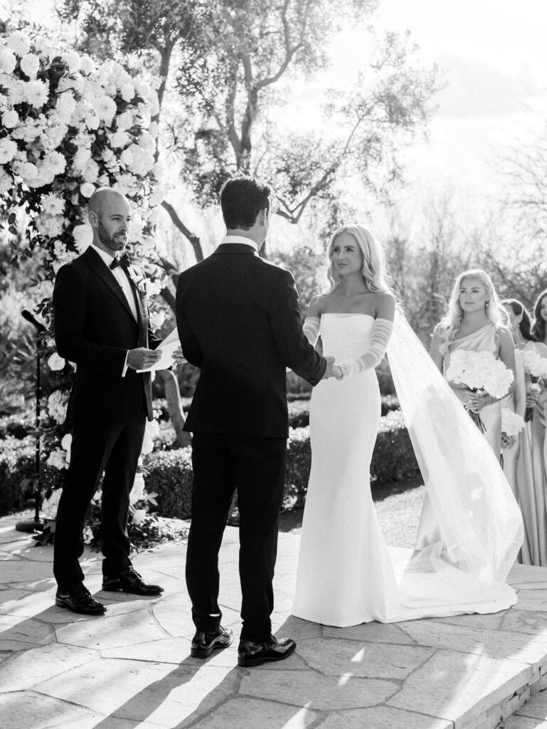 Their ceremony was set within the lush gardens of El Chorro, framed by the striking profile of Camelback Mountain. With guests seated under the open sky, Courtney walked toward Chad with steady grace, each step a reflection of the love they share. The ceremony was warm, honest, and full of emotion, a perfect mirror of their connection.