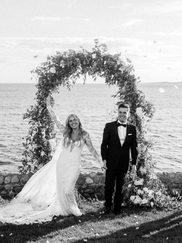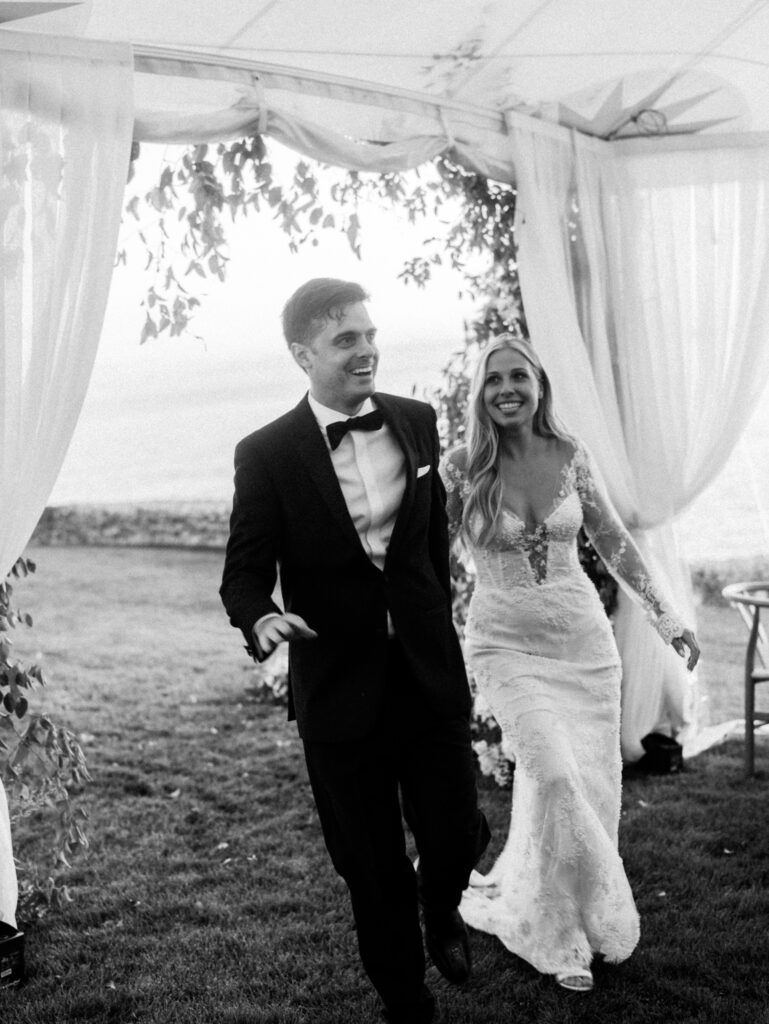Guests gathered at a waterfront ceremony site as live guitar, trumpet, and ukulele music filled the air. The sound of La Vie En Rose accompanied Ellery’s walk down the aisle, followed by Nicole’s graceful entrance to Can’t Help Falling in Love.With heartfelt vows exchanged beneath the summer sky, their ceremony concluded with cheers as the couple recessed to You Are the Best Thing. The celebration was only just beginning.